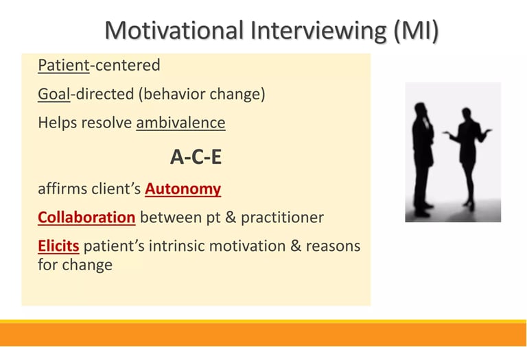 Motivational interviewing is a collaborative style of conversation that helps you explore your own reasons for change. Instead of telling you what to do, I ask guided questions that support your confidence, clarity, and motivation to move toward the goals that matter to you.